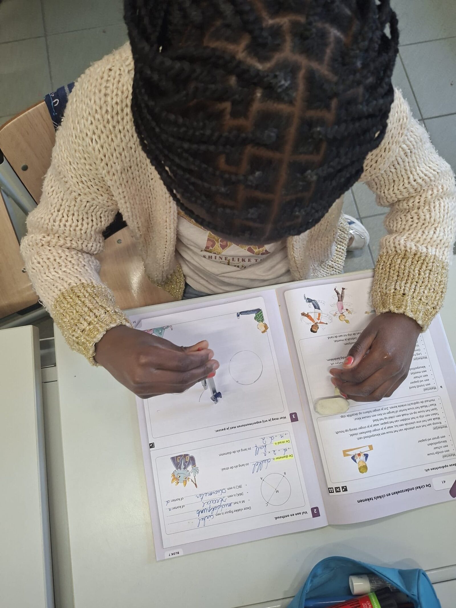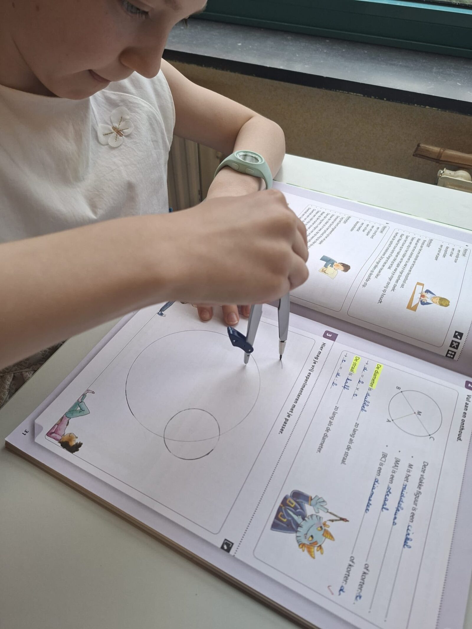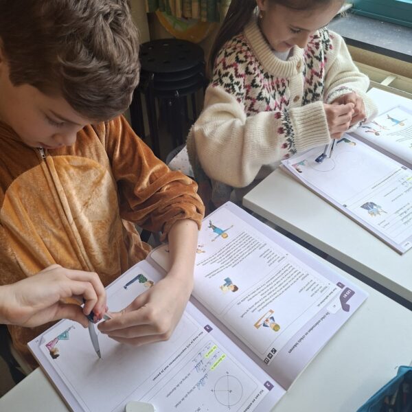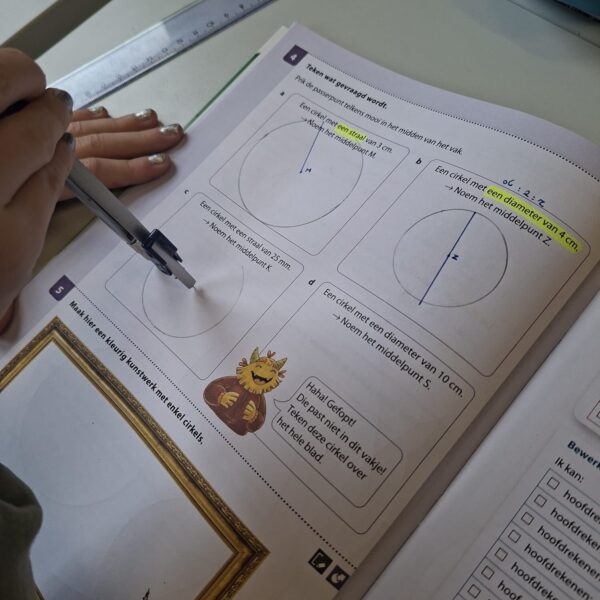 Vandaag gingen de leerlingen van het vierde leerjaar de uitdaging aan met de passer. In het begin was het nog even zoeken naar het juiste middelpunt en de perfecte grip, maar oefening baart kunst. Het lukte steeds beter om goede cirkels op papier te toveren!