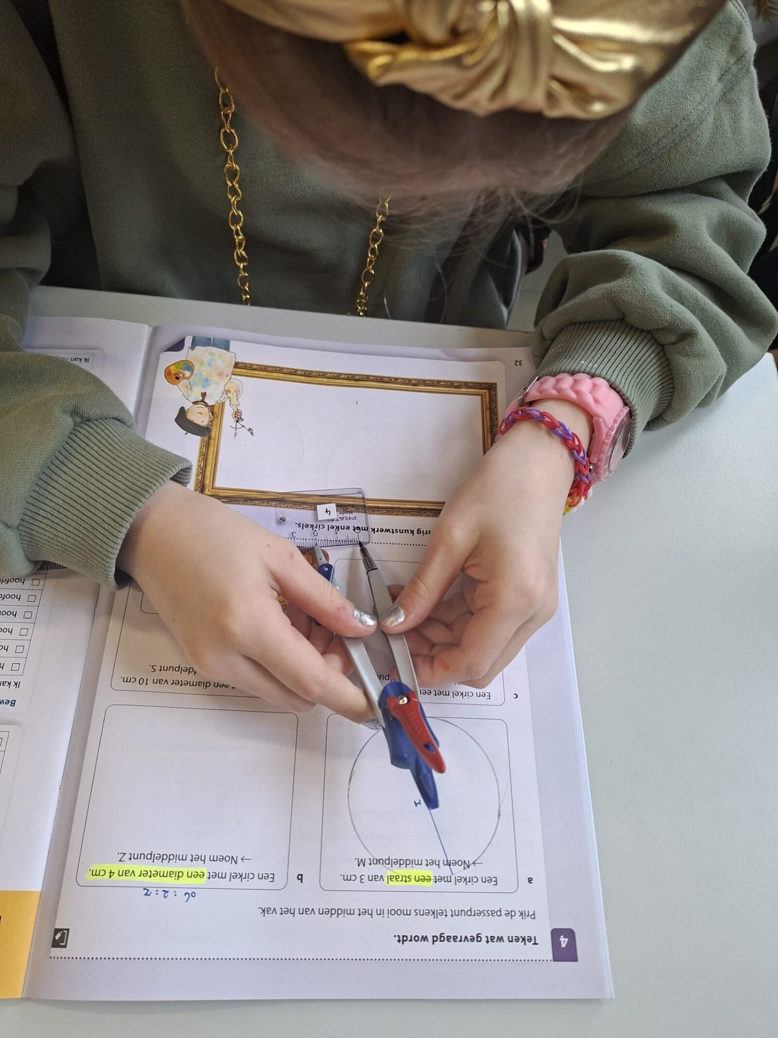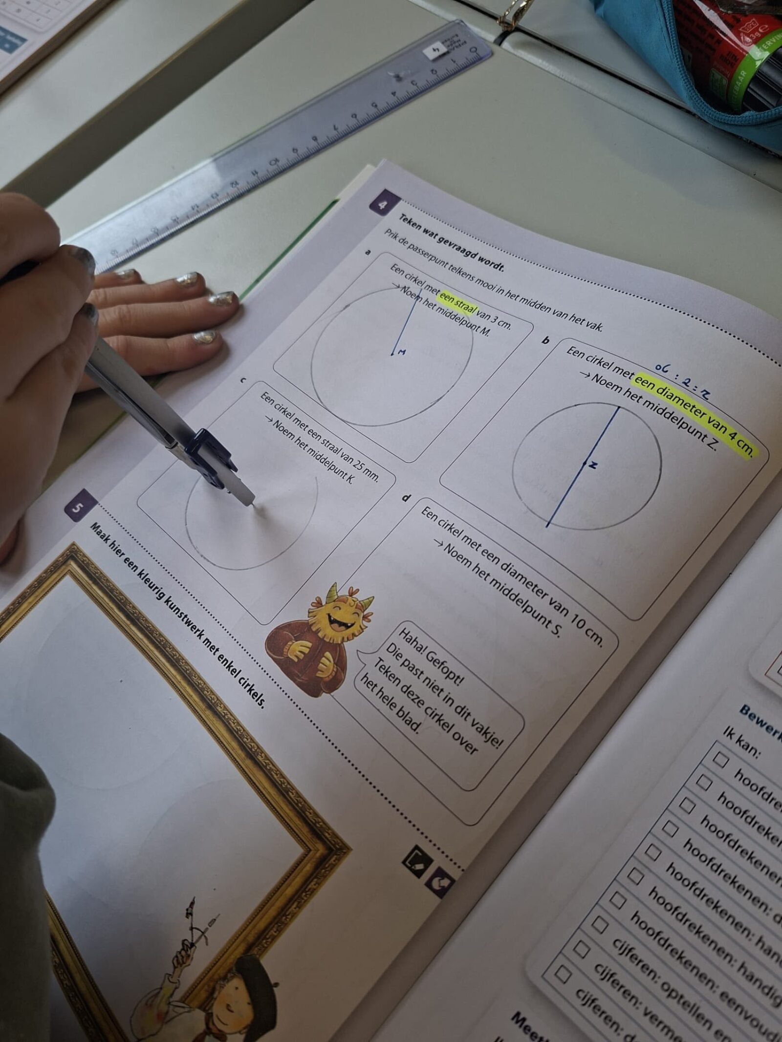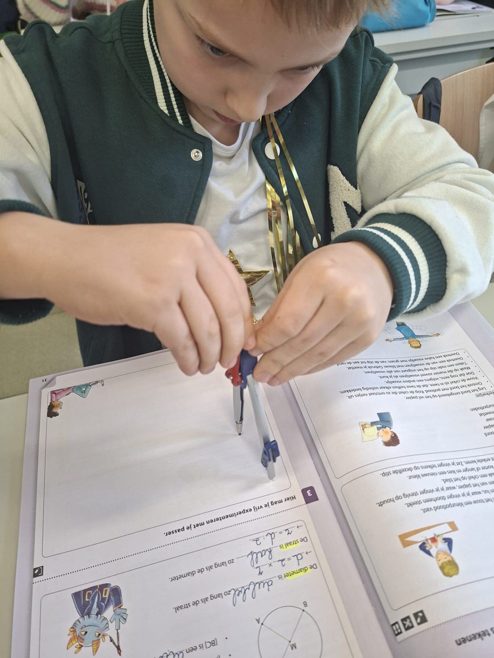 Vandaag gingen de leerlingen van het vierde leerjaar de uitdaging aan met de passer. In het begin was het nog even zoeken naar het juiste middelpunt en de perfecte grip, maar oefening baart kunst. Het lukte steeds beter om goede cirkels op papier te toveren!